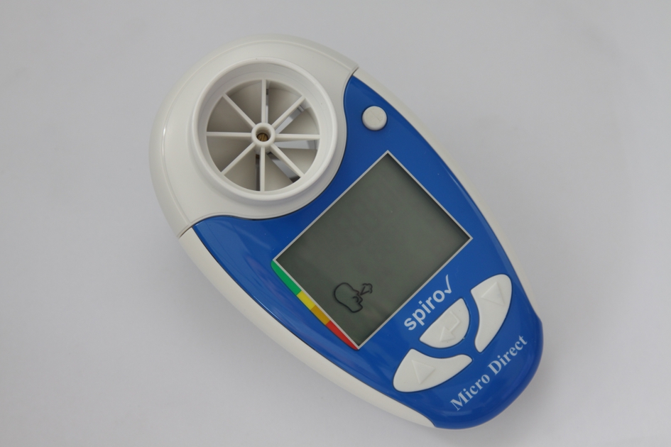 hand-held SpiroCheck spirometer measures and displays a patient’s FEV1,